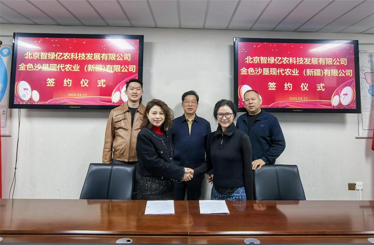 为加速聪慧绿色农产物开辟取手艺使用,推广健康生态种植,帮力亿万农人创业创富,3月17日,智绿亿农科技成长无限公司取金色沙垦现代农业(新疆)无限公司签订计谋合做和谈。两边拟正在新疆试点使用甲壳素相关产物,设立尝试室成立甲壳素产物出产,研发出产推广叶面肥取冲施肥,合力使用推广全生物可降解液体地膜取全生物植保膜等,鞭策新疆维吾尔自治区农业向高端化、智能化、健康化、绿色化成长,配合打制可引领、可复制、可示范绿色生态农业样板,并将其逐渐辐射推广至国表里。